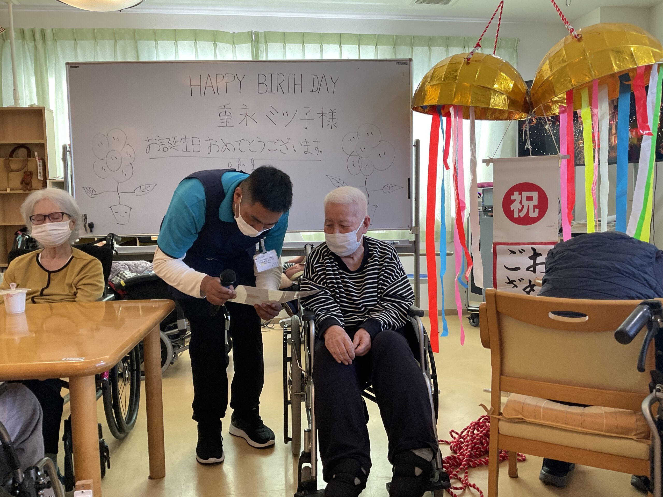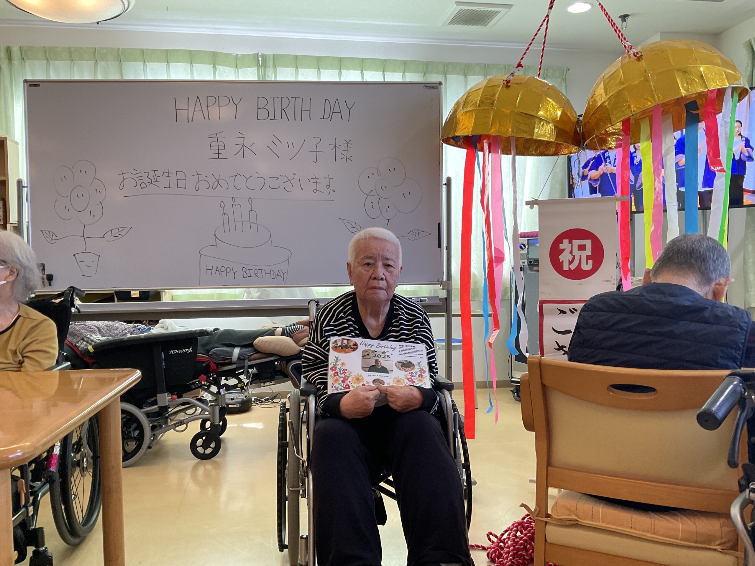 2025.8.1 (金) 7月生まれのお客様🎊 ブログ ケア・オアシス南風台 皆様、こんにちは。🥰 セミの声が響き、空も海もいちだんと青く輝く季節となりました。🌊 暑さの中にも、皆様の咲顔が涼やかに広がるひとときがありました。🌻 7月生まれの皆様をお祝いした誕生会の様子をお届けいたします。🎉 <写真撮影時のみマスクを外して頂きました。> お疲れ様でした。 ありがとうございます。 感謝♡ 新着情報一覧