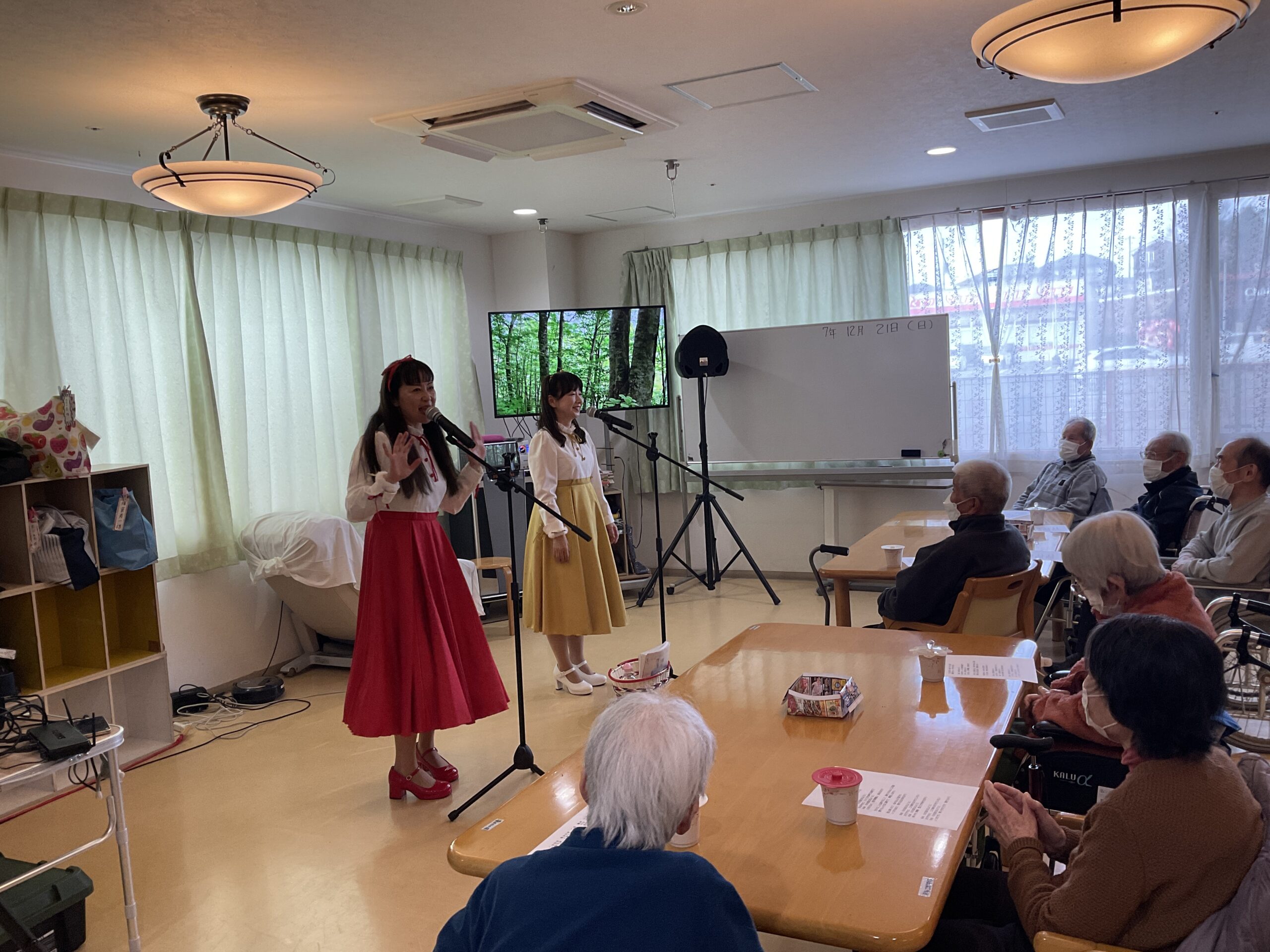 2025.12.25 (木) 🎅 サンタさん大集合!クリスマス会 ♪ ブログ ケア・オアシス南風台 皆様、こんにちは。🥰 街がイルミネーションに彩られ、心も弾む季節となりましたね。✨ 寒さが増す中でも、あたたかな気持ちになるひとときが広がっています。♨️ ケア・オアシス南風台では、12月24日・25日の二日間、クリスマス会を行いました。♪🎉🎉 <小さな赤ちゃんサンタの登場に、皆様思わずほっこり。👶🎅> <たくさんのサンタさんに囲まれて、にぎやかなひとときに。🎅🎅> <いと♡愛ガールズ様の歌のプレゼントに、大きな拍手が送られました。💖💖🎤> お疲れ様です。 ありがとうございます。 感謝♡ 🎄✨ 新着情報一覧