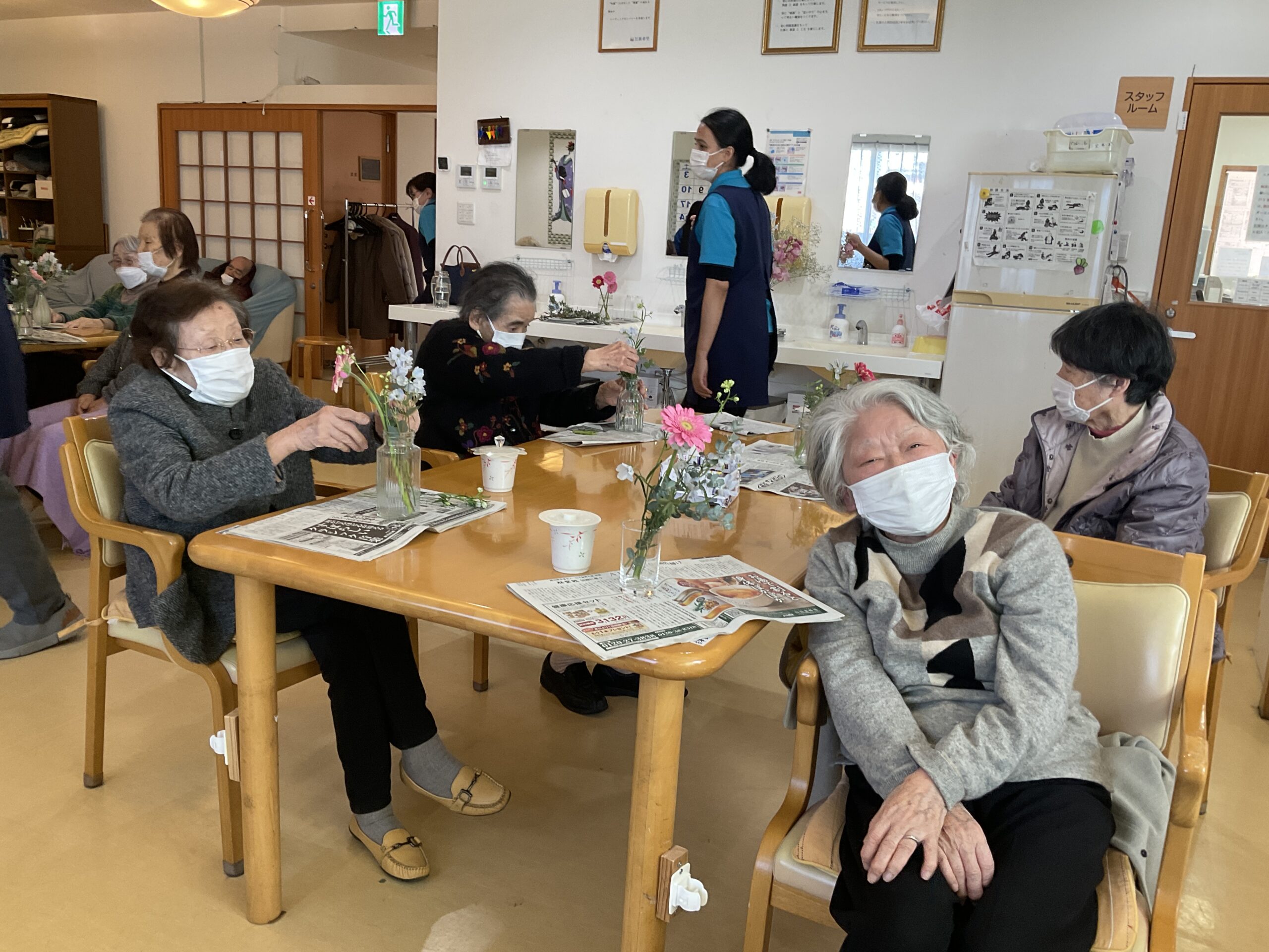 2026.1.30 (金) 🌸 冬の花にふれて…生け花のひととき 🌸 ブログ ケア・オアシス南風台 皆様、こんにちは。🥰 寒い日が続いていますが、冬でも花は元気に咲いています。❄️🌼 ケア・オアシス南風台では、生け花を行いました。🔆 季節の花を手に取り、皆様それぞれ思い思いに生けられ、穏やかな時間となりました。🍵 <冬の花を使って、素敵な作品が完成しました。💐> お疲れ様です。 ありがとうございます。 感謝♡ 新着情報一覧