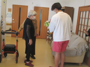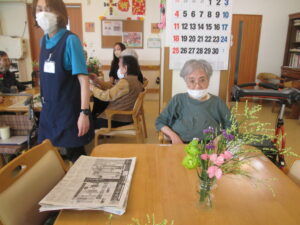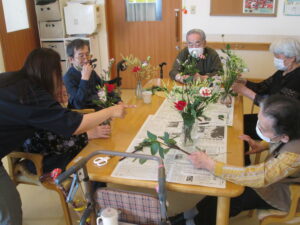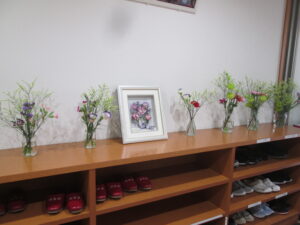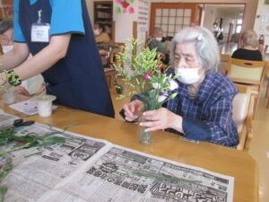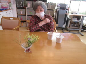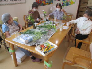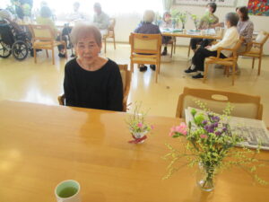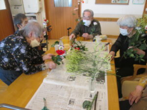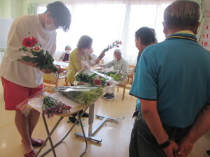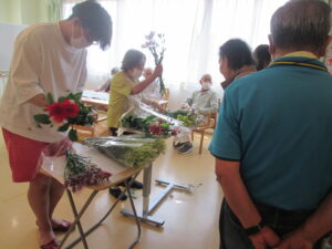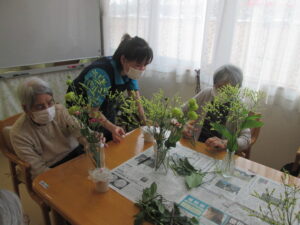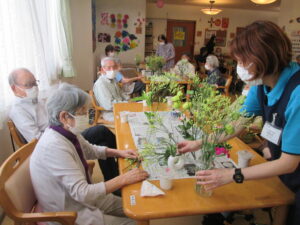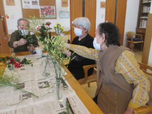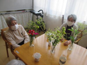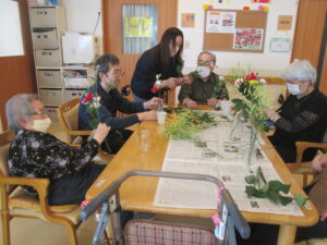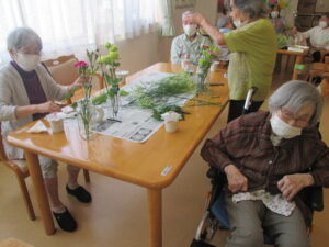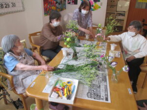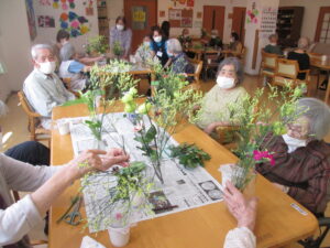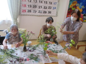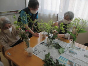 先日、皆様にお花を活けていただきました。お花に負けず、皆様、活き活きと活動されています。