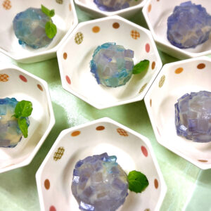バタフライピーという青い花のシロップを使って作った寒天はとっても綺麗な色ですよ✨