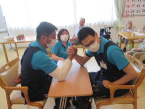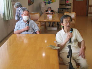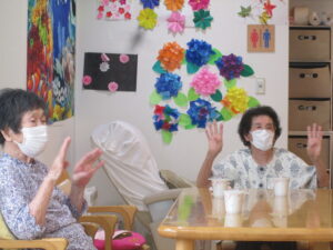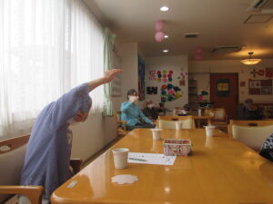 2023.8.3 (木) 暑中お見舞い申し上げます。☀ ブログ ケア・オアシス南風台 皆様、こんにちは。(*^^*) 毎日、酷暑が続いています。 異常な暑さで、室内での活動が多くなっていますが、身体や頭を動かす事で身体の活性化を図っています。 今日も元気に、ケア・オアシス南風台デイサービス開催しています。❕ <午前中の集団体操です。 しっかりと身体が伸びています。> <昼食には、給食事業部からの素敵なメッセージ付きです。> <自主的に運動も行なっています。❕> お疲れ様でした。 今日も素敵な咲顔(えがお)が、満開でした。 ありがとうございます。 感謝♡ 新着情報一覧